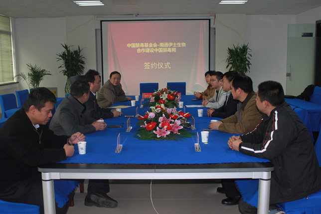 2013年12月7日上午,南通市伊士生物技術(shù)有限責(zé)任公司在伊士生物研究院會(huì)議室舉行了“中國禁毒基金會(huì)-南通伊士生物合作建設(shè)中國禁毒網(wǎng)簽約儀式”。中國禁毒基金會(huì)秘書長李憲輝先生,江蘇省公安廳禁毒總隊(duì)副總隊(duì)長陳紅淦先生,省公安廳和市公安局相關(guān)領(lǐng)導(dǎo)共7人出席了簽約儀式。