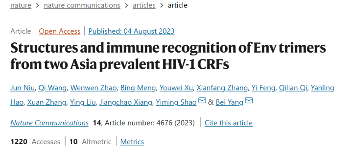 “免疫聚焦型疫苗策略”的開(kāi)展不僅需要廣譜中和抗體抗原表位的指引,也需要對(duì)Env蛋白的結(jié)構(gòu)與抗原特征進(jìn)行全面掌握。當(dāng)前,針對(duì)Env蛋白的結(jié)構(gòu)與抗原特征研究均集中于在歐、美、非洲流行的A、B、C亞型,對(duì)于在亞洲尤其是我國(guó)占主導(dǎo)地位的流行重組亞型CRF01_AE和CRF07_BC則鮮有相關(guān)報(bào)道。此外,僅有極少數(shù)廣譜中和抗體從感染流行重組亞型的個(gè)體中分離,且它們的抗原表位與中和機(jī)制也尚未得到充分闡釋。上述信息的缺乏阻礙了我們對(duì)于流行重組亞型Env蛋白的結(jié)構(gòu)與免疫原性的認(rèn)識(shí),也不利于免疫聚焦型疫苗研發(fā)策略在我國(guó)的開(kāi)展及應(yīng)用,在此背景下,楊貝課題組與合作者開(kāi)展了深入的研究。