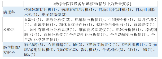 病理、檢驗、影像三個科室的設備配置方面,病理科設備配置數(shù)量、種類均明顯少于檢驗、影像科室。
