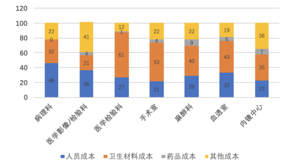 根據(jù)HIA發(fā)布的《中國首部公立醫(yī)院成本報告(2015)》,我國公立醫(yī)院各科室成本構(gòu)成中,病理科人員成本占總成本比達到46%,顯著高于其他臨床科室;檢驗、影像科室這一指標分別為35%、27%。