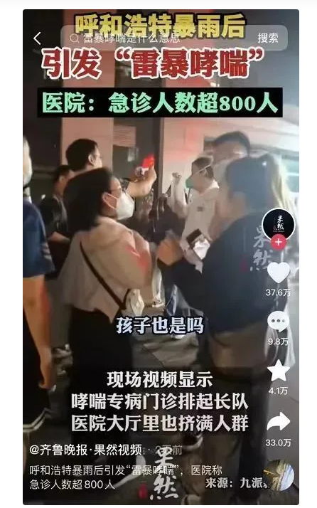 隨后,呼和浩特市衛(wèi)健委工作人員表示,近期當地多家醫(yī)院的雷暴哮喘病人確實增多了。