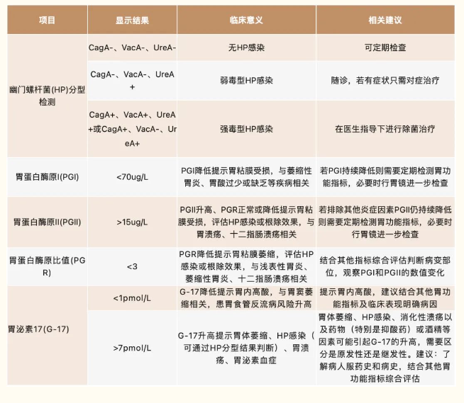 檢測(cè)胃功能七項(xiàng)臨床意義